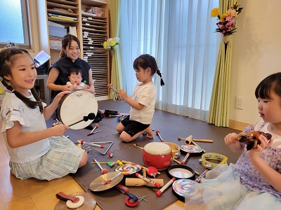 3歳から小学1年生のお子様は、お友達との自由合奏が、大好きです。沢山の楽器を広げて、お友達と一緒に演奏を、楽しめます。
